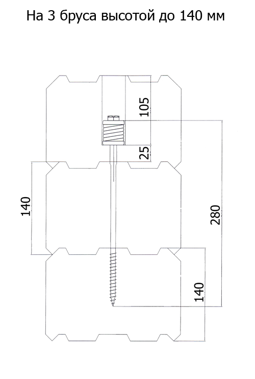 Узел KrepWood максимально плотно прижимает бревна, профилированный брус, клееный брус или лафет друг к другу в момент монтажа, а создающая мощное напряжение пружина действует с силой 200 кг и предупреждает появление межвенцовых зазоров.