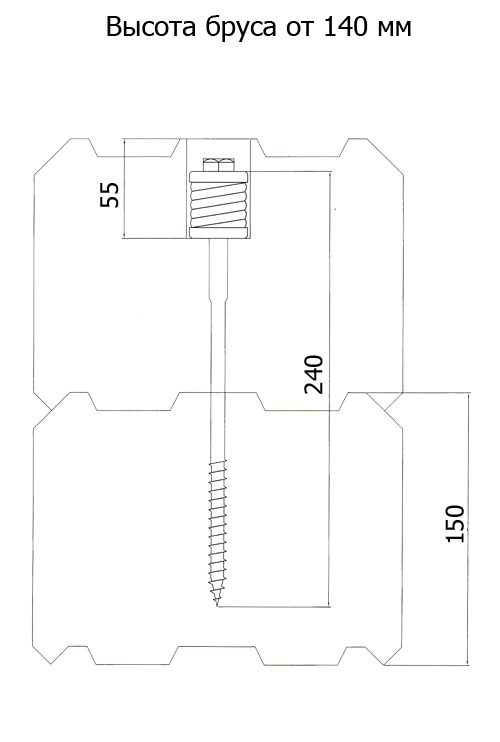 Узел KrepWood максимально плотно прижимает бревна, профилированный брус, клееный брус или лафет друг к другу в момент монтажа, а создающая мощное напряжение пружина действует с силой 200 кг и предупреждает появление межвенцовых зазоров.