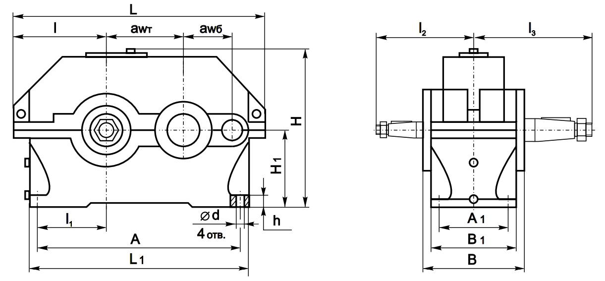 Типоразмер awб awт L L1 l l1 l2 l3 H H1 h A A1 B B1 d