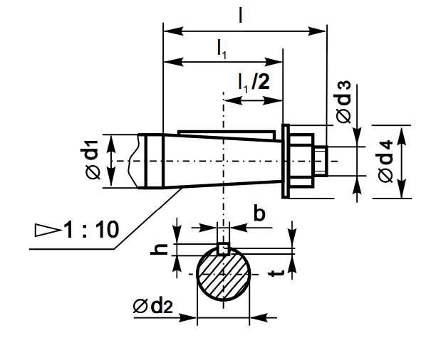 Типоразмер Вал d1 d2 d3 d4 l l1 b h t