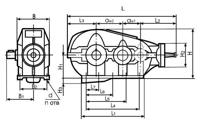 Тип aw1 aw2 В В1 В2 L L1 L2 L3 L4 L5 L6 L7